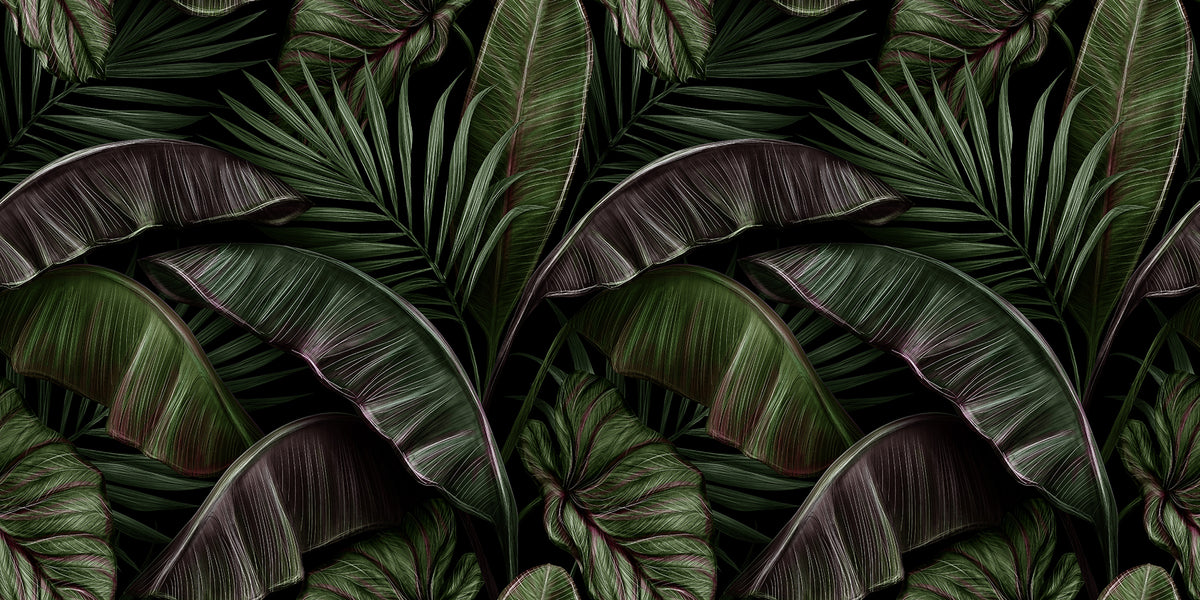 Add a style with great depths and colors to your room with the Dark Banana Leaf Pattern Wallpaper Mural design. We print with vibrant colors.